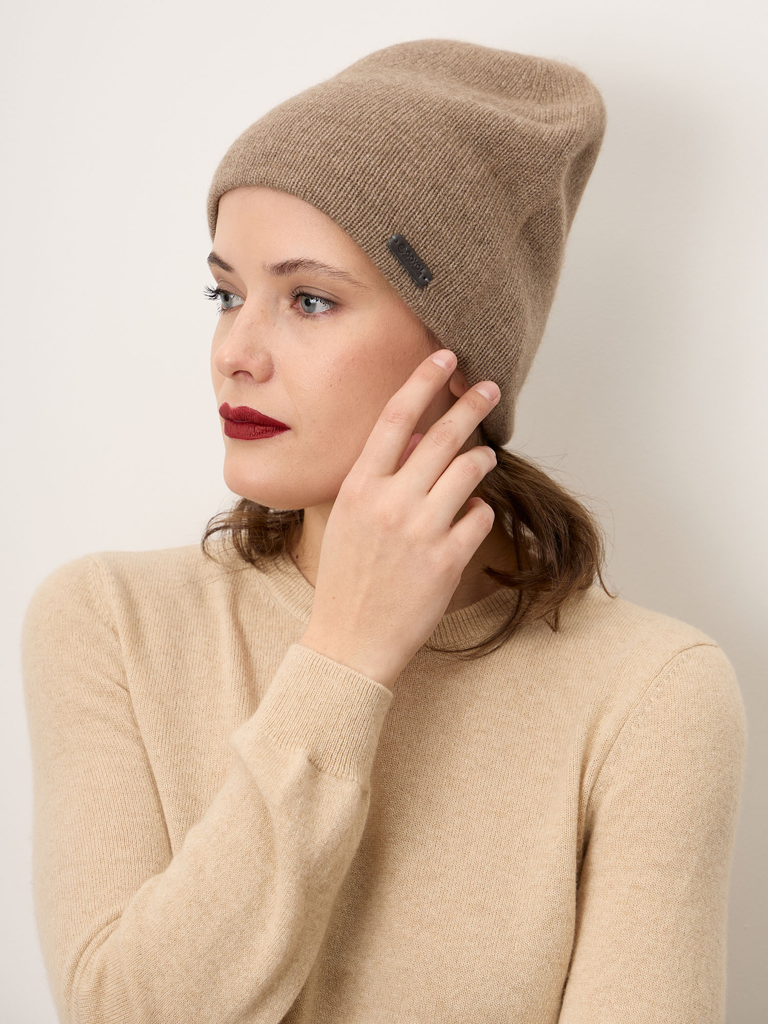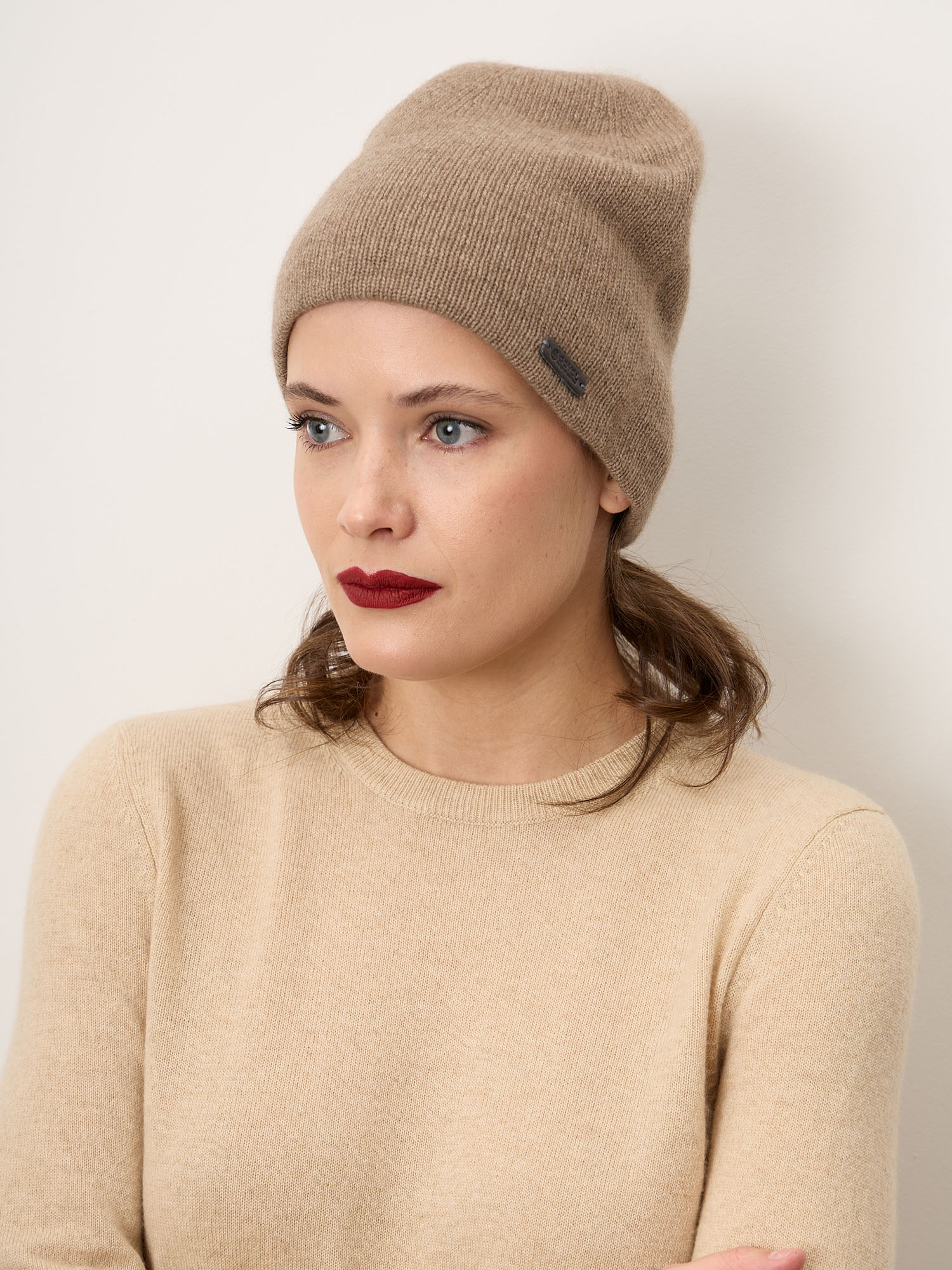 Шапка из кашемира 15-14-019-0C капучино