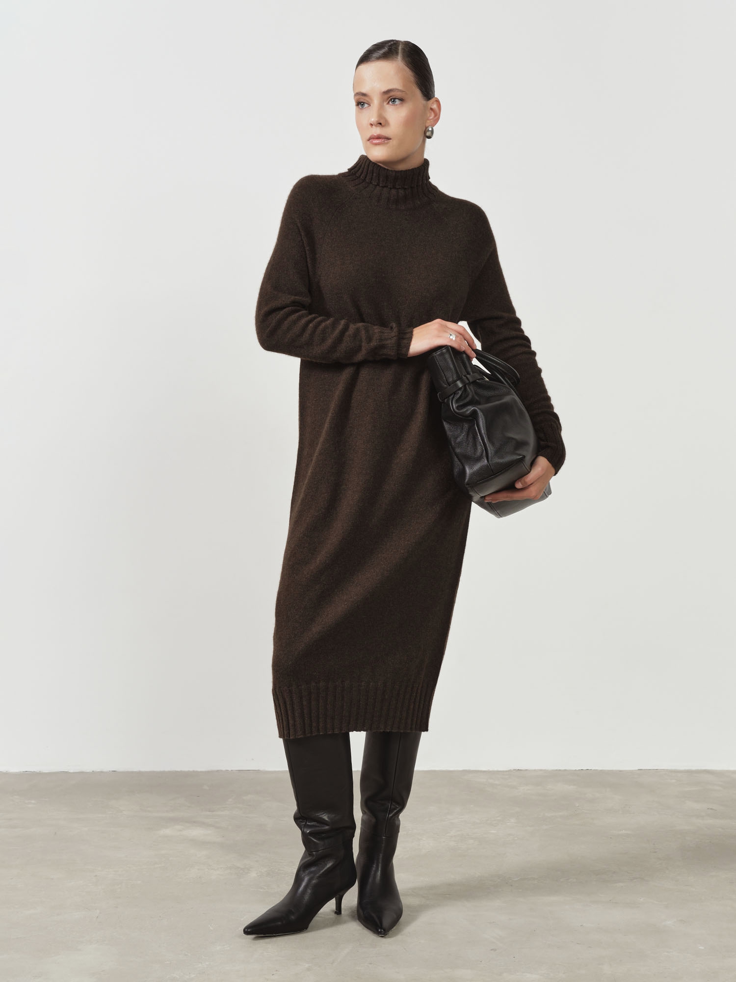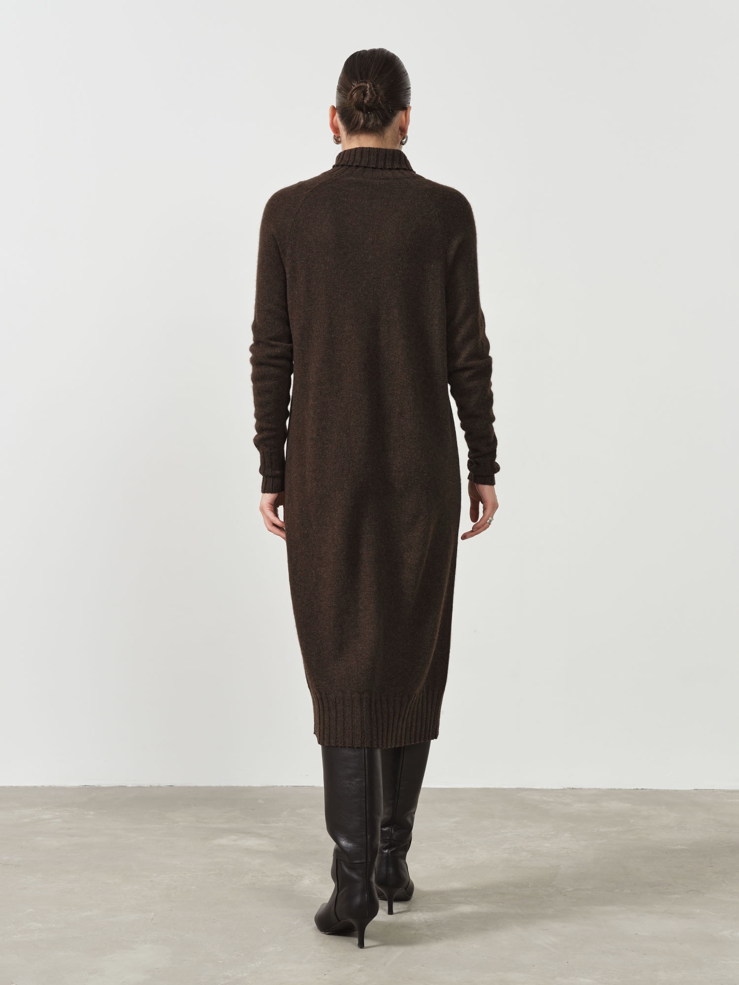 Свободный крой и длина миди позволяют легко комбинировать платье с любыми элементами гардероба — от сапог до ботинок. Этот оттенок темного шоколада подчеркнет Вашу индивидуальность и легко впишется в любой повседневный или деловой образ.