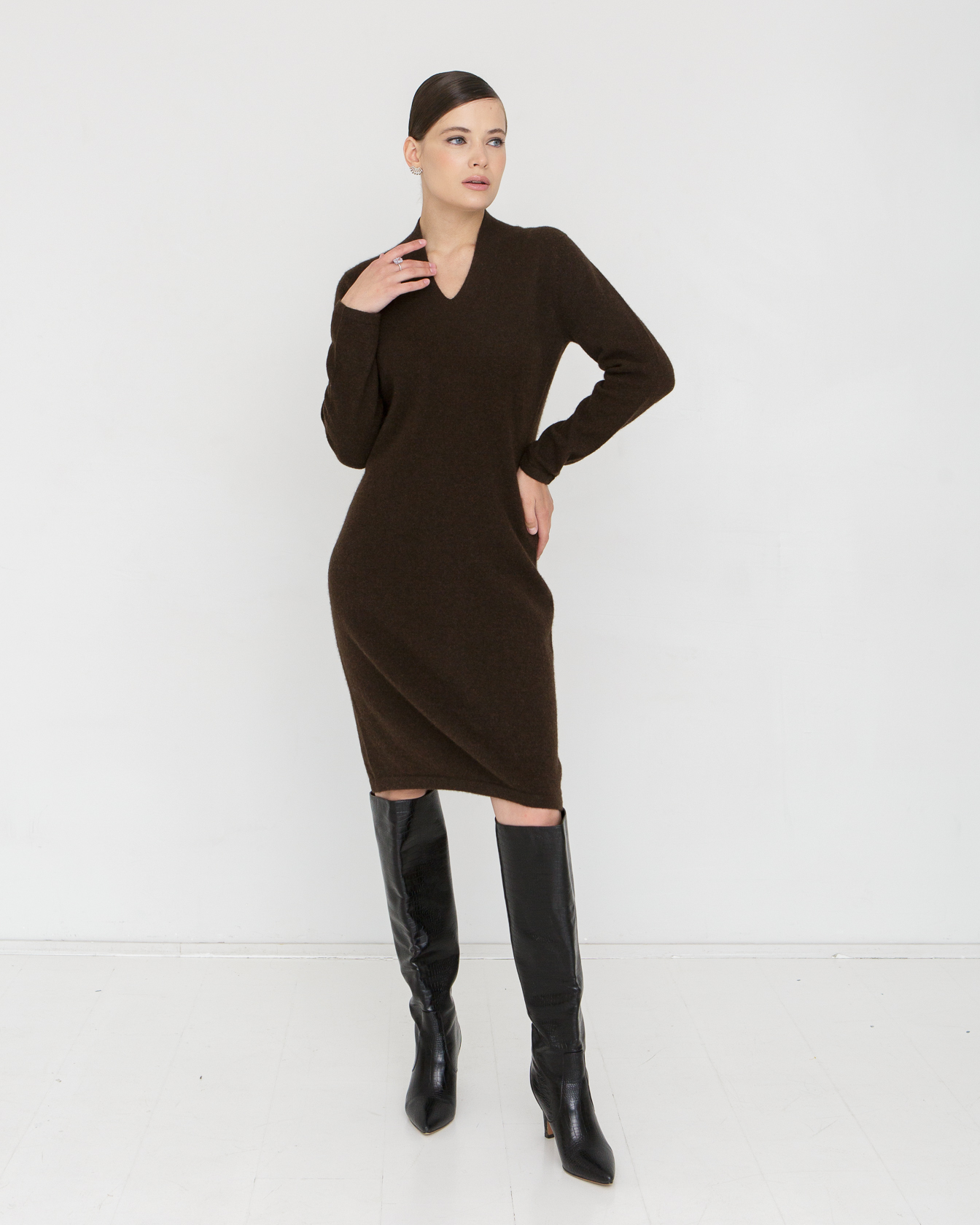 Платье из пуха яка 13123 темно-коричневое